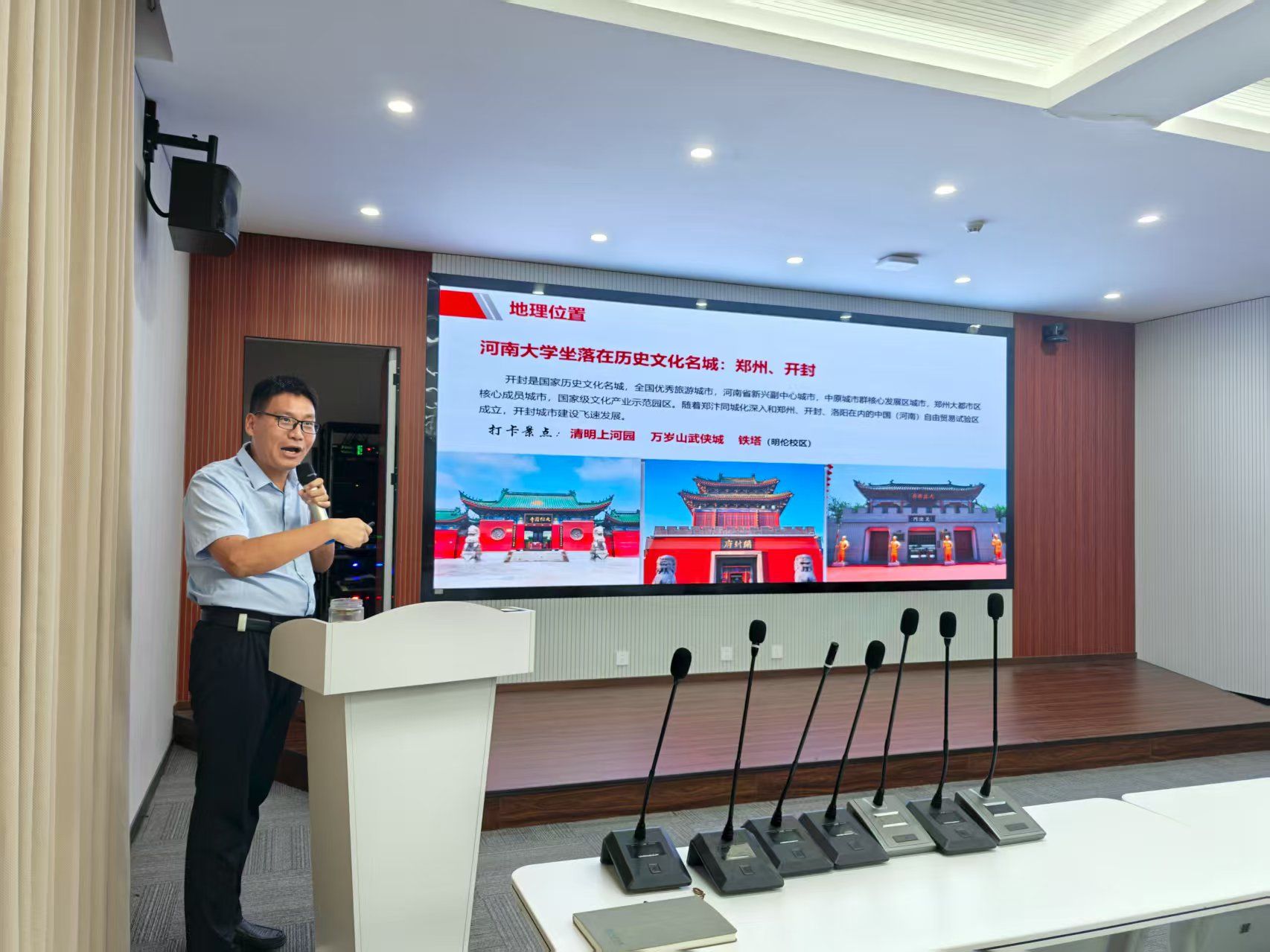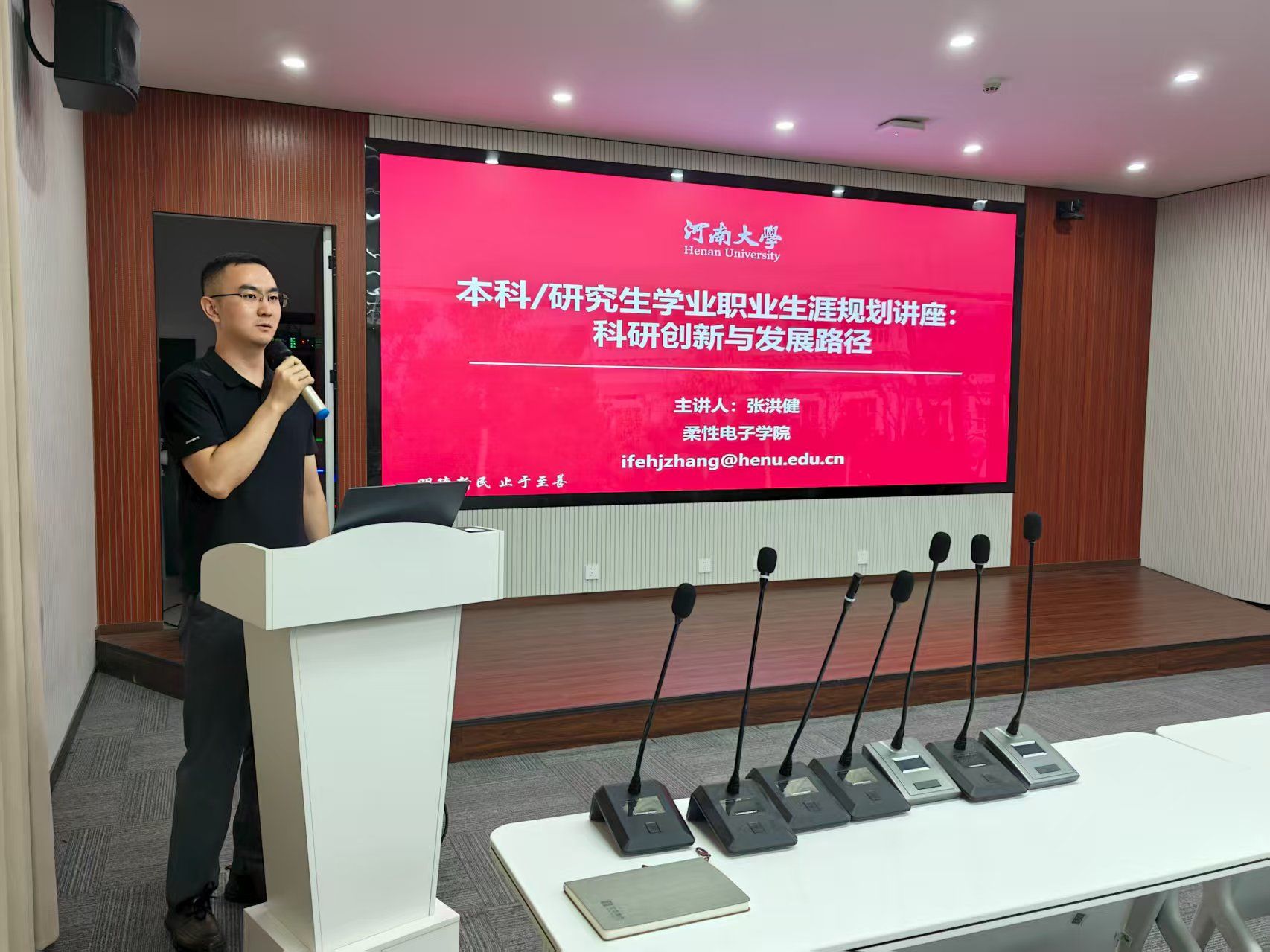 活动伊始,赵高峰院长向同学们展示了河南大学优美的校园环境、深厚的历史文化底蕴以及学院成立历程及近年来取得的科研成果,重点介绍了我院优秀科研团队,学工队伍、高水平科研论文等学术成果。在学生培养方面,他系统介绍了柔性电子学学科专业特点、课程体系设置、实验平台配置、导师制度等核心内容,鼓励新生积极加入学院科研队伍,帮助新生全面建立专业认知。他勉励同学们永远要在奋斗路上,祝福同学们能学有所成,前程似锦。