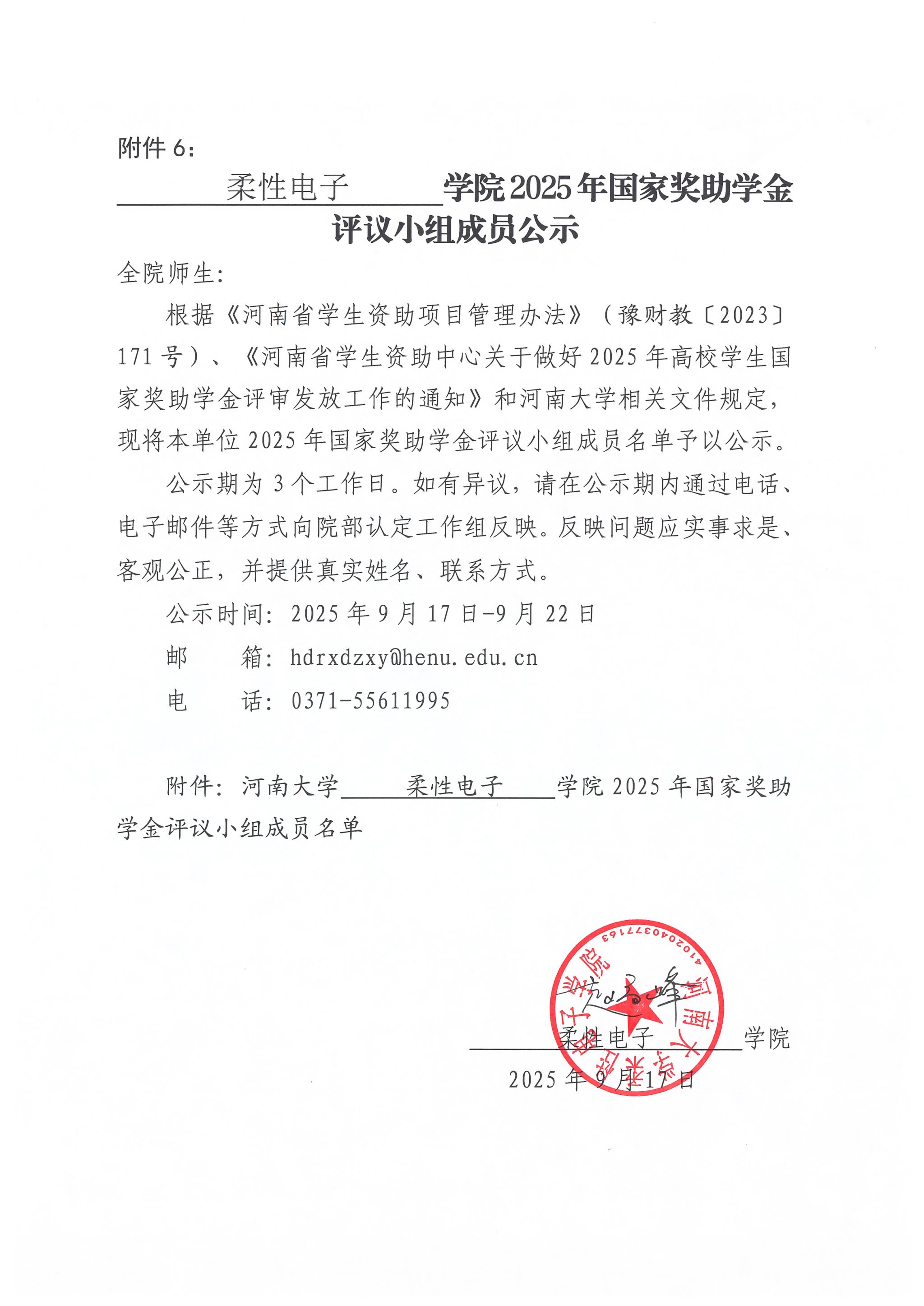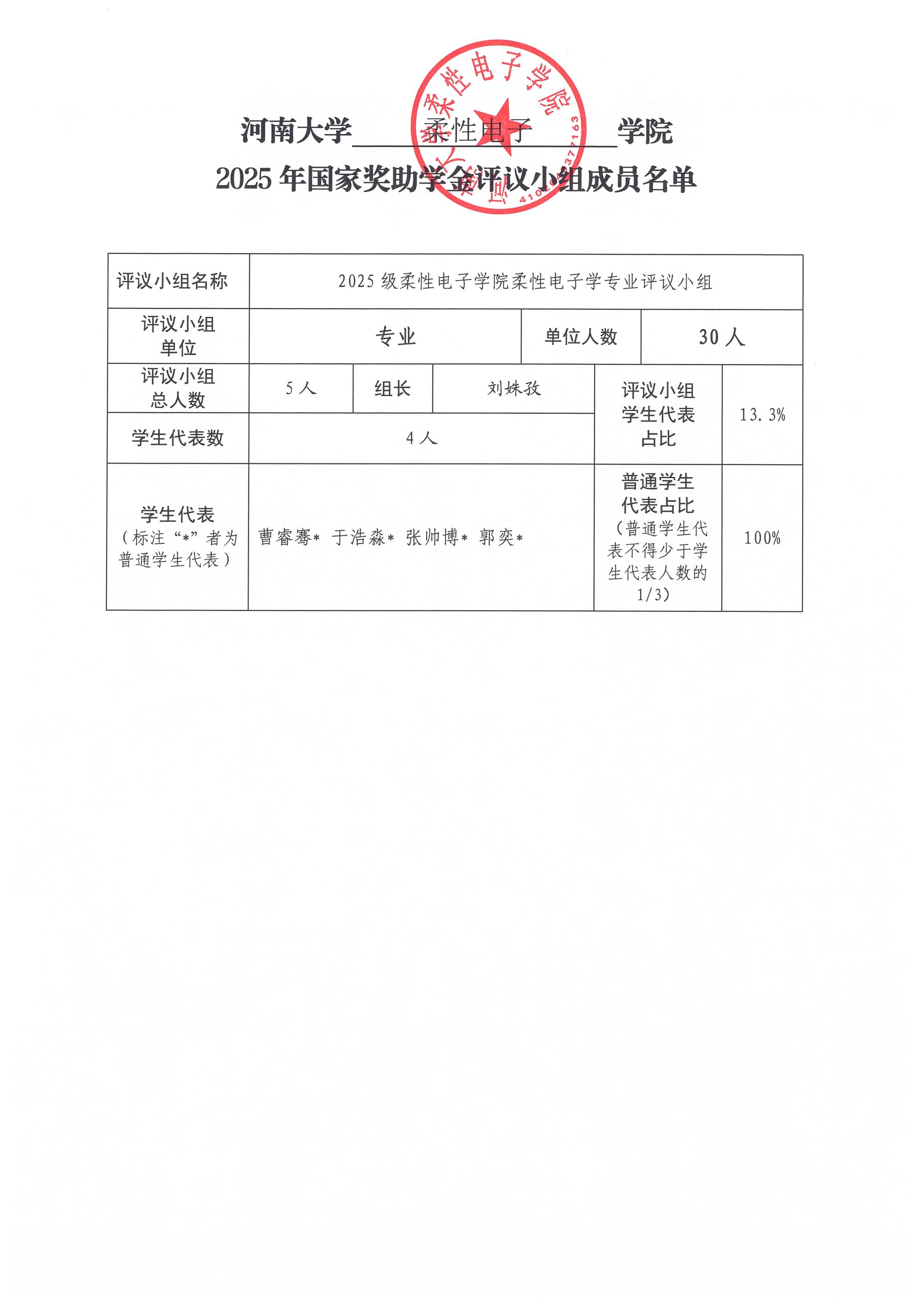 柔性电子学院2025年国家奖助学金评议小组成员公示