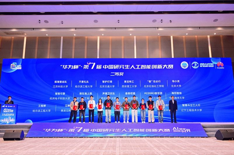 20251028-30日,由教育部学位管理与研究生教育司指导,中国学位与研究生教育学会和中国科协青少年科技中心共同主办,中国海洋大学承办的“华为杯”第七届中国研究生人工智能创新大赛全国总决赛在青岛落幕。本届大赛共吸引了全国数百所高校的数千名研究生组队参赛,报名3421支队伍。经初赛评审,共252支参赛队伍入围全国总决赛。经过多轮严格评审与精彩角逐,在我院张飞老师指导下,由我院曹紫梁、闫雪、郭佳欢、张蕊共同组成的参赛团队(团队名称:小飞侠队)荣获全国二等奖。这是我校在本次该项高水平赛事中的最好成绩。