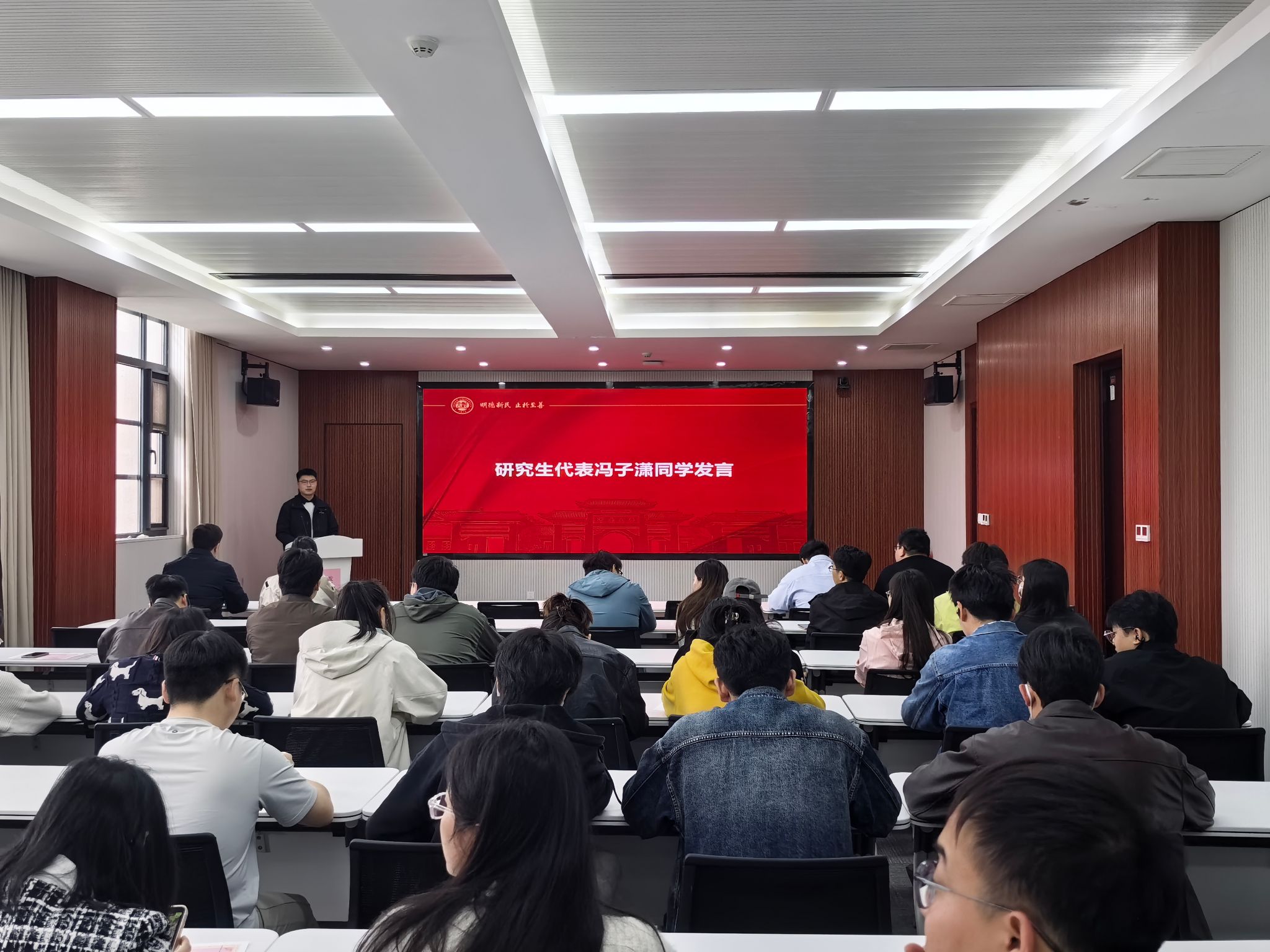 过去一学年,学院研究生教育工作稳步推进,学子们在在学术科研、创新实践等方面深耕细作、奋勇争先,取得扎实成效,涌现出一批品学兼优、勇于创新的优秀代表。活动现场,研究生辅导员谷志达老师宣读了2025学年研究生表彰决定及表彰名单,其中冯子潇同学荣获国家奖学金,梁雨润、马骞程等25名同学荣获研究生学业奖学金。