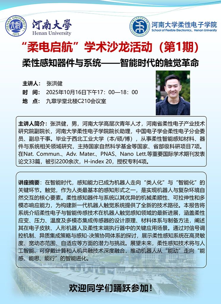 [“柔电启航”学术沙龙] 第1期 柔性感知器件与系统——智能时代的触觉革命