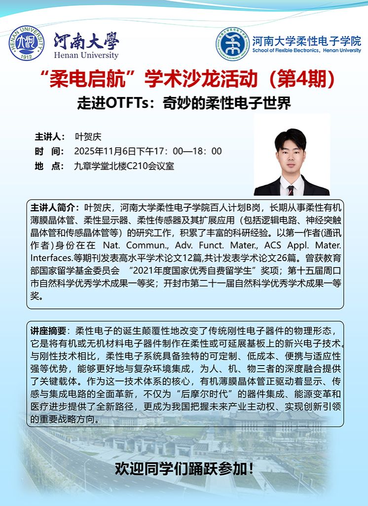 [“柔电启航”学术沙龙] 第4期 走进OTFTs:奇妙的柔性电子世界